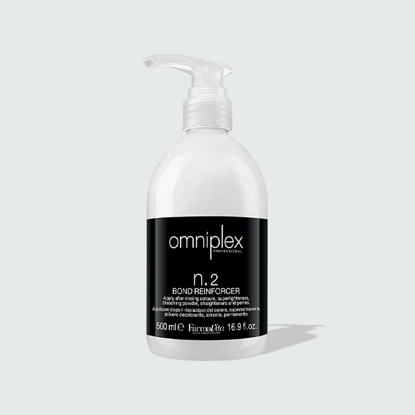 Omniplex Bond Reinforce stabilizuje nastale veze, dubinski hidrira, zatvara kutikulu i štiti boju od ispiranja. Nanosi se nakon ispiranja hemijskog tretmana.