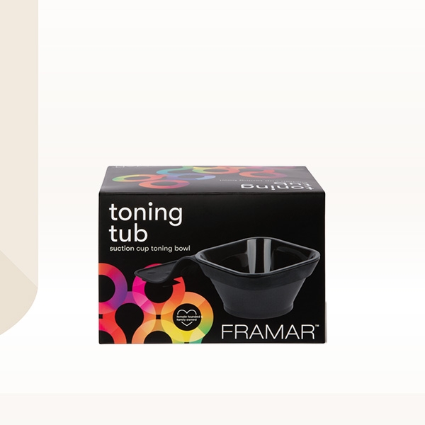 Framar Toning Tub je posuda za farbanje dizajnirana tako da se direktno kači na keramiku šamponjere uz pomoć vakuma i olakša aplikaciju tonera direktno za šamponjerom, smanjujući nered tokom rada.