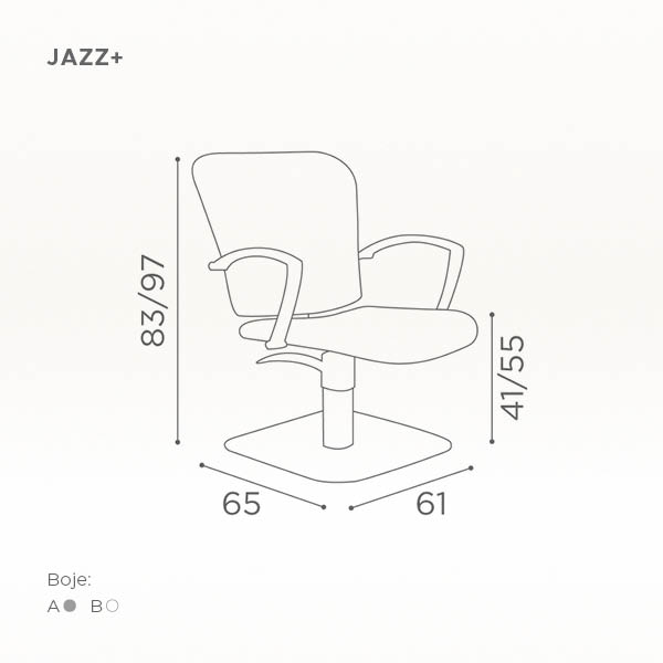 Frizerska radna stolica "Jazz+" namenjena je za šišanje kose, kao i za druge tretmane u frizerskim salonima.
