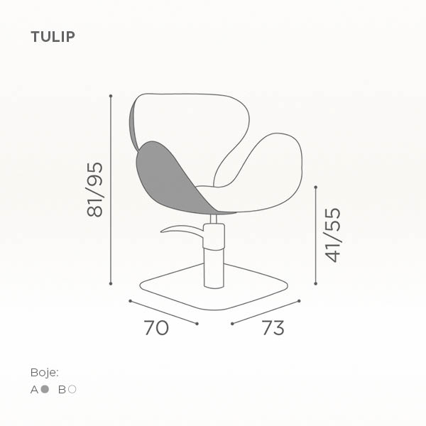 Frizerska radna stolica "Tulip" namenjena je za šišanje kose, kao i za druge tretmane u frizerskim salonima.