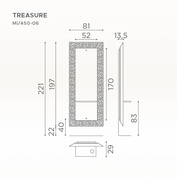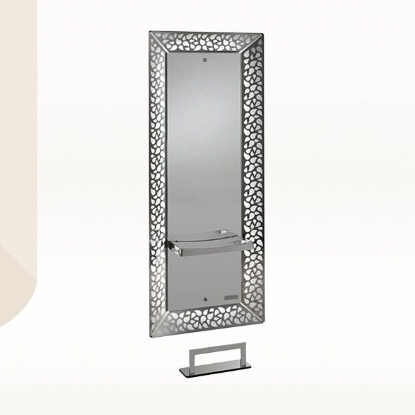 Ukoliko ste u potrazi za blagom, pronašli ste ga! Elegantno frizersko ogledalo Salon Ambience "Treasure" ima veličanstveni okvir, sa stilskim ukrasom koji obogaćuje radnu jedinicu, dajući joj dodatni dodir kvaliteta. Sa LED pozadinskim osvetljenjem, ovo ogledalo će zasijati u vašem salonu poput dragocenog dragulja. Funkcionalnost ovog ogledala dodatno je unapređena sa sofisticiranom radnom policom koja sadrži i držač za fen. Ogledalo "Treasure", takođe, dolazi u kompletu sa naslonom za noge.