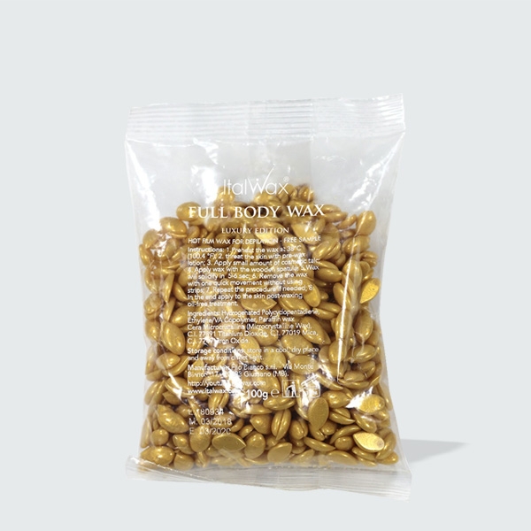 Film vosak u granulama za depilaciju ItalWax "Full Body Wax" (100 g) se koristi za uklanjanje dlaka sa svih delova tela bez korišćenja traka za depilaciju.