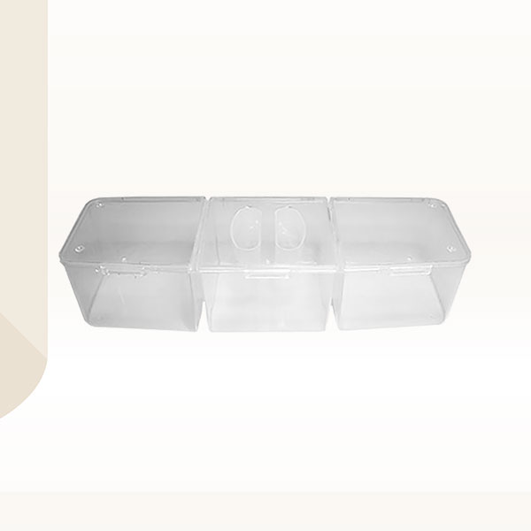 Pravougani klaser za ukrase beloj u beloj boji ima tri pregrade i idealan je za držanje sitnih dodatak za nokte u vašem salonu. Dimenzije su 220x69x52 mm.