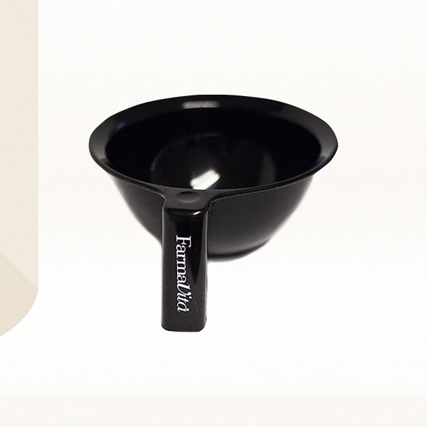FarmaVita crna posuda za farbanje izrađena je od čvrste plastike koja je pogodna za dugotrajnu upotrebu. Omogućava lako mešanje i nanošenje boje na kosu.