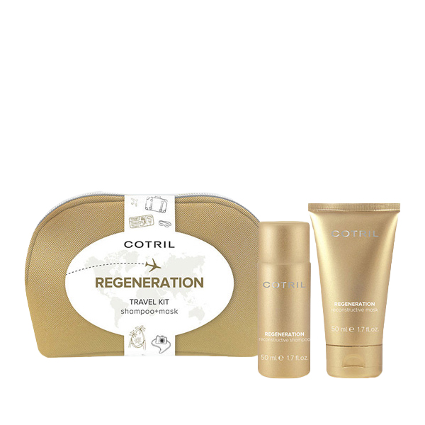 Putni set REGENERATION sadrži šampon i masku koji vam omogućava da uvek imate sa sobom proizvode koji će negovati vašu kosu.