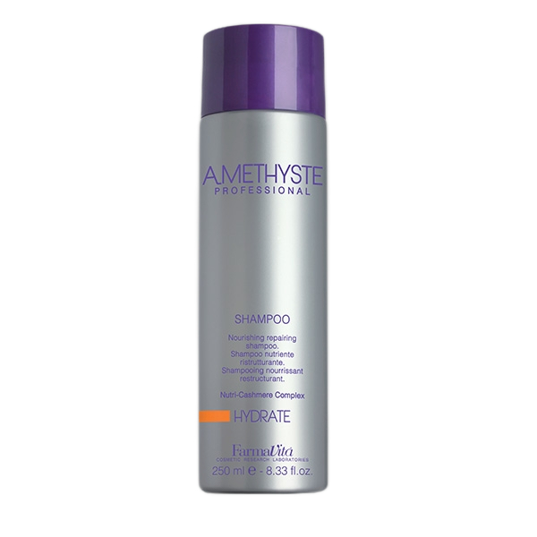FarmaVita Amethyste "Hydrate" (250 ml) je šampon za hidrataciju suve i oštećene kose. Ova linija šampona pruža kosi visok sjaj, poboljšava teksturu njene dlake i čini je lakom za češljanje. Nakon korišćenja Hydrate šampona kosa je meka na dodir i zaštićena od spoljnih uticaja. Dostupan je i u pakovanju od jednog litra.