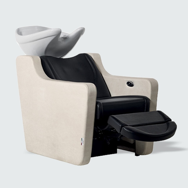 Opremljena električnim naslonom za noge i sistemom za masažu, ova šamponjera sadrži sedište i naslon posebno dizajnirane da pruže izuzetnu udobnost. Takođe, zahvaljujući prostranom delu na poleđini šamponjere, frizer će imati dovoljno prostra za rad čak i kada obavlja posao iz sedećeg položaja.
