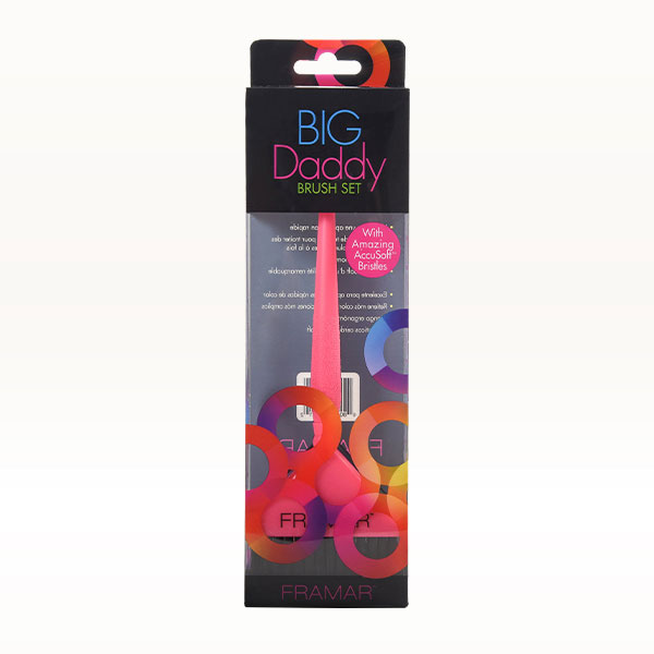 Framar "Big Daddy" set se satoji od tri četkice za farbanje kose. Sa ergonomskom drškom i AccuSoft dlakama, sve četkice su izdržljive i izuzetno precizne prilikom nanošenja boja. Njihova širina omogućava brže nanošenje više boja na šire sekcije. Ovaj set sadrži četkice u crnoj, ljubičastoj i pink boji.