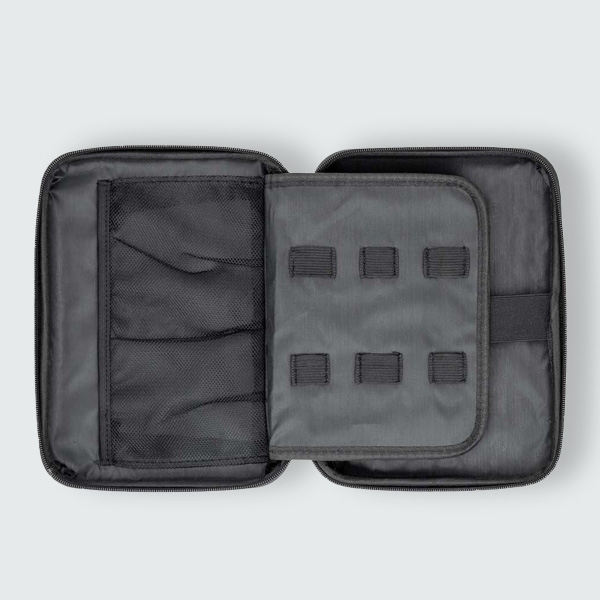 Unutrašnjost ima dva odeljka za zaštitu, organizovanost i spremnost alata za upotrebu.